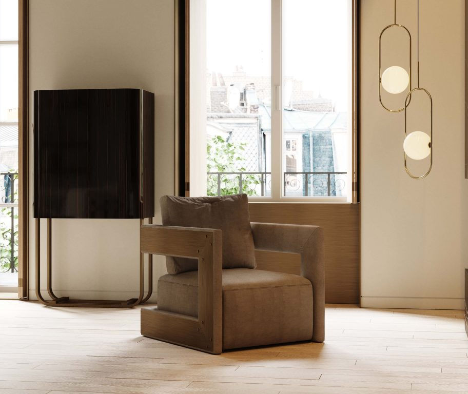 O HIS Bar Cabinet da coleção HIS é uma peça de design marcante que combina funcionalidade com elegância refinada. Com linhas verticais discretas e acabamento sofisticado em madeira, esta peça é uma ode ao estilo contemporâneo com inspiração nos movimentos artísticos do início do século XX. Ideal para ambientes sociais e salas de jantar modernas, o armário oferece armazenamento elegante para garrafas, copos e utensílios, mantendo a sofisticação e organização. A sua base metálica em aço inoxidável ou latão proporciona estabilidade e um toque industrial chic.