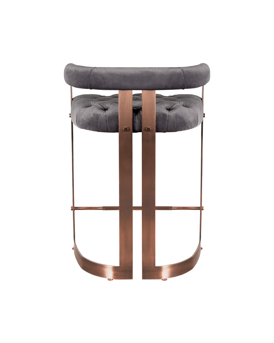 A Cadeira Bar Winfrey destaca-se pela combinação refinada entre conforto e design industrial elegante. O assento estofado com acabamento capitonné traz um toque clássico, enquanto a estrutura metálica em tom bronze ou cobre escovado imprime modernidade e robustez.