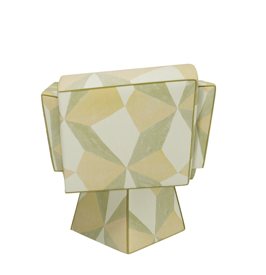 O estofado com padrão geométrico pastel dá um ar moderno e divertido, enquanto a construção robusta proporciona conforto e estabilidade. Uma peça statement para salas de jantar contemporâneas, espaços artísticos ou ambientes de design autoral.