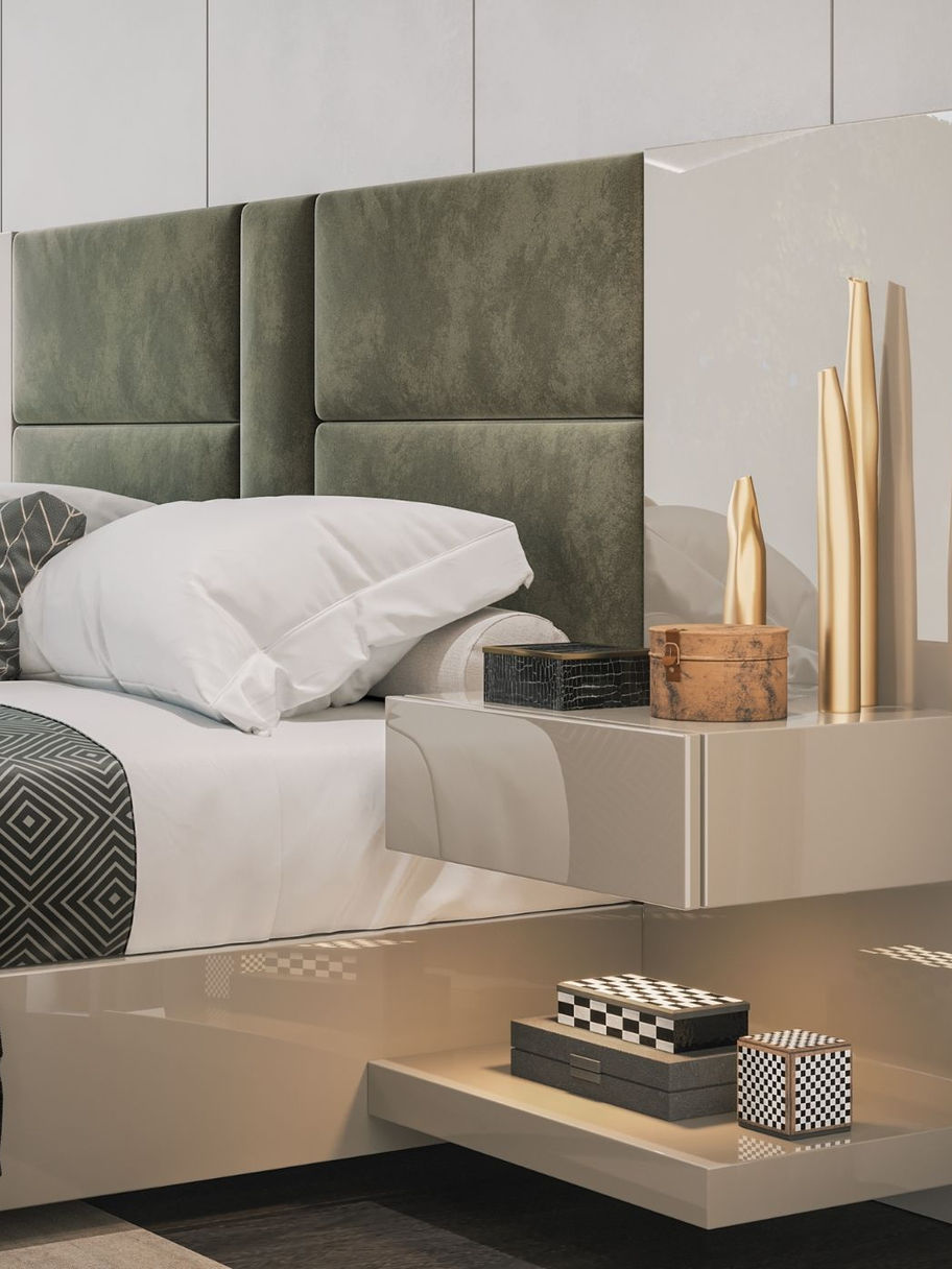 A Mesa de Cabeceira Brave II destaca-se pela sua presença leve e sofisticada. Suspensa lateralmente na cabeceira da cama, oferece funcionalidade sem comprometer o espaço visual.