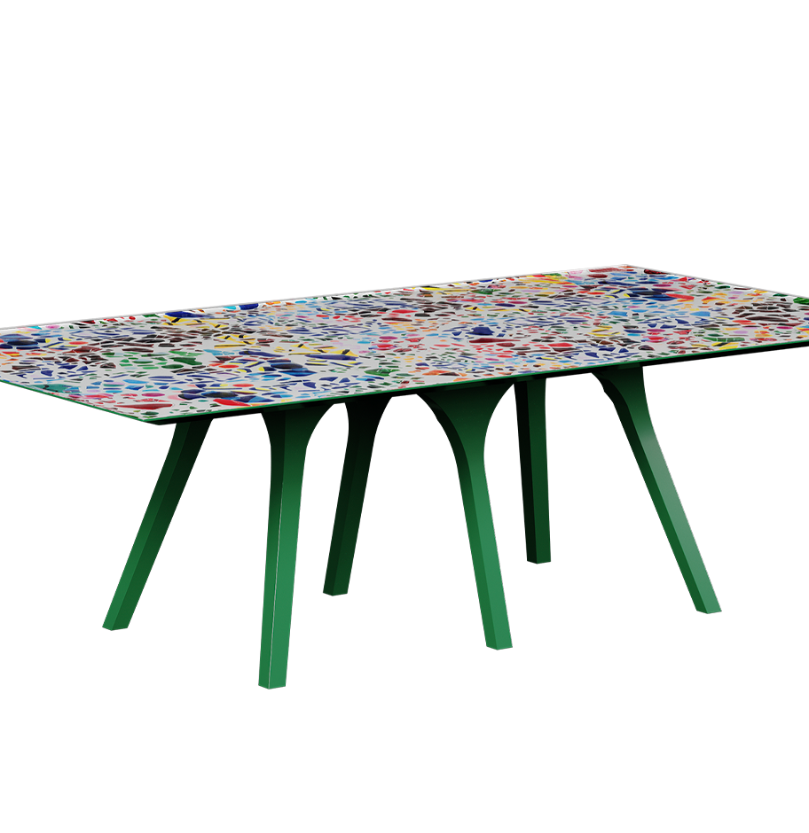 A Mesa de Jantar Templo é uma celebração vibrante da cor e da tradição artesanal. Com tampo revestido em mosaico de azulejos coloridos, esta peça transforma qualquer sala de jantar num espaço expressivo e cheio de personalidade. As suas pernas em madeira lacada verde oferecem um contraste ousado e contemporâneo, equilibrando o dinamismo visual do tampo com uma base sólida e escultural. Ideal para interiores criativos, artísticos e descontraídos, esta mesa é um verdadeiro ponto de encontro entre arte e funcionalidade.