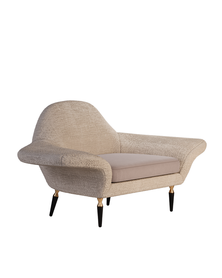 A Poltrona Dorothy celebra o charme retrô com proporções ousadas e curvas envolventes. Seu estofamento em tecido azul claro traz frescor e leveza, enquanto os braços amplos e o encosto moldado oferecem conforto ergonômico. Os pés em madeira torneada com detalhes em latão conferem um toque clássico e sofisticado, ideal para interiores que mesclam nostalgia e modernidade.