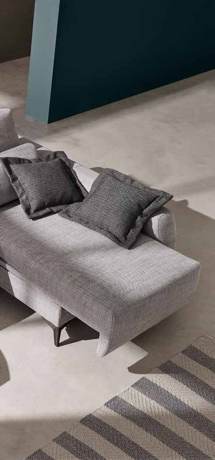 Este modelo permite uma ampla personalização: com ou sem canto, com terminais, braços retos ou com capas, porta USB, e pés metálicos de 13,5 cm. As cabeceiras reclináveis garantem um apoio ergonómico, e as almofadas decorativas estão incluídas por módulo.